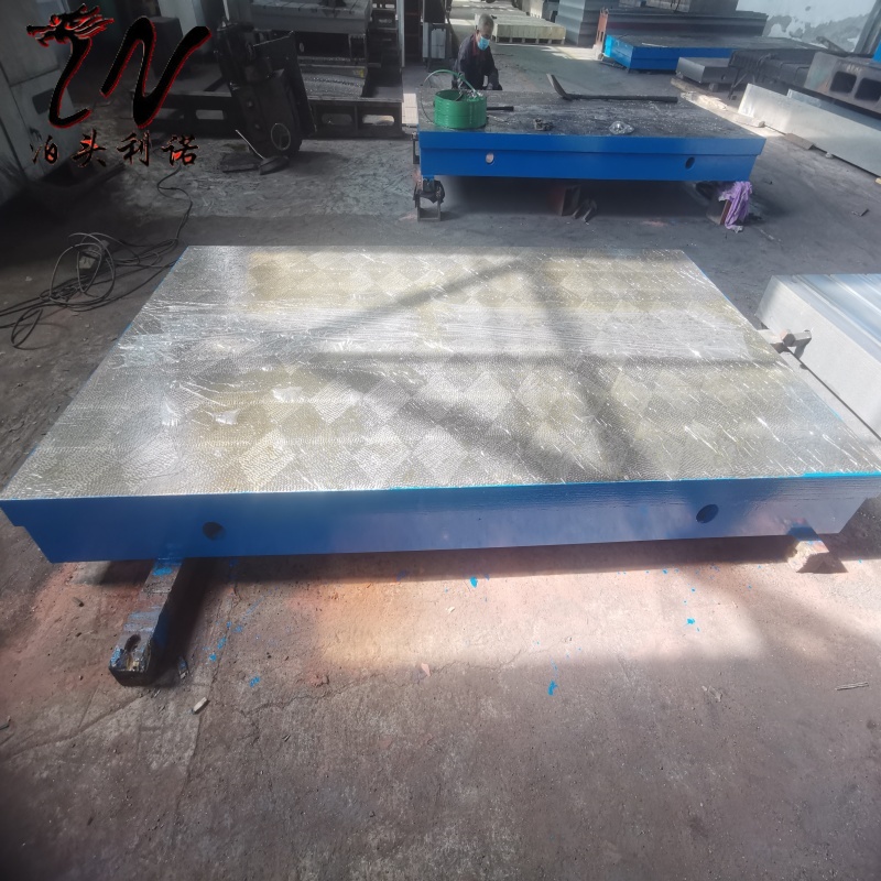 泊头市利诺工量具有限公司是铸铁平板厂家、铸铁平台厂家,铸铁平板铸铁平台厂家供应检验平台、划线平台、焊接平台一般单块规格为100x100mm-3000x8000mm,大于此规格时可以把多块拼接在一起使用,特殊规格可按图定制。产品以生铁为原材料经冶炼、铸造经人工时效或者自然时效处理,工作面经机械加工(刨、铣、磨)后再由本公司刮研、铲刮技术人员手工刮研、铲刮或者研磨制造而成,工作面上可加工V型、T型、U型槽和圆孔、长孔等。具有美观大方、稳定性好、精度高等特点,产品制造完成后应达到外部表面无缺陷,内部无气孔和砂眼的基本要求。