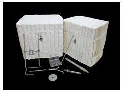 陶瓷纤维模块是采用性能的对应材质的陶瓷纤维针刺毯按纤维组块结构、尺寸、由专业技工,用模块加工专用设备制作而成,为了壁衬砌筑完成后模块之间相互挤压形成无缝隙紧密的保温整体,在制作过程中均保持压缩量,产品配套锚固系统可与窑炉壳体牢固连接、尺寸准确、安装简便。